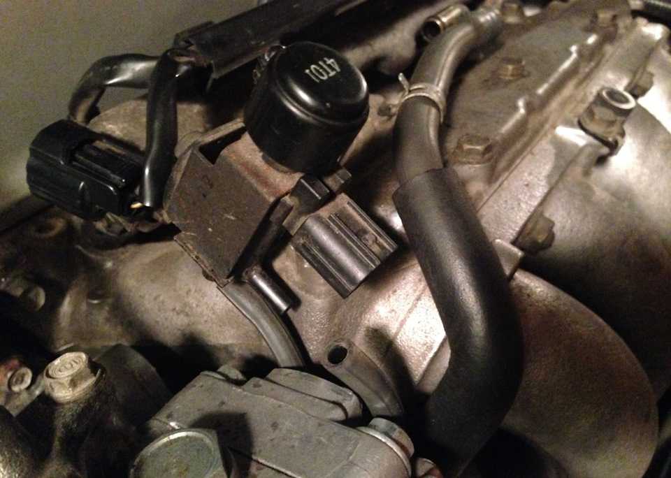 Теперь необходимо проверить, что клапан не заклинил в закрытом положении. Для этого подключаем всё обратно ко впускному коллектору и запускаем двигатель на холостом ходу.