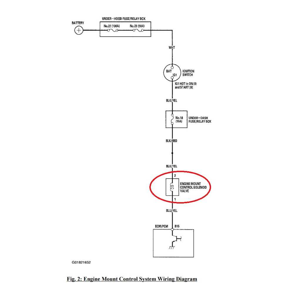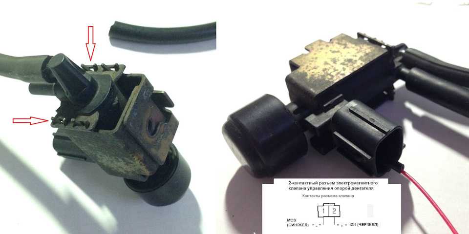 Наконец то! А то я уже стал переживать что придется проверять проводку от мозгов — если нет командного минуса на клапан. Итак, мой клапан управления опорой двигателя срабатывает на оборотах до 800. При этом мало что меняется с вибрацией двигателя – ну может двигатель работает чуть более плавно. А так есть небольшая вибрация, отдающая в открытую дверь на низких оборотах. Из мануала можно сделать вывод, что передняя подушка приговорена – если она существенно не реагирует на включение клапана и отсос из подушки. С помощью скребки принудительно включал клапан (замкнув скребку на корпус) и на 1000 и на 2000 об/мин движка – ничего существенно с двигателем не менялось. Скинул верхний шланг на сработавшем клапане – в верхнем штуцере клапана сосет хорошо. Вакуум идет на подушку.