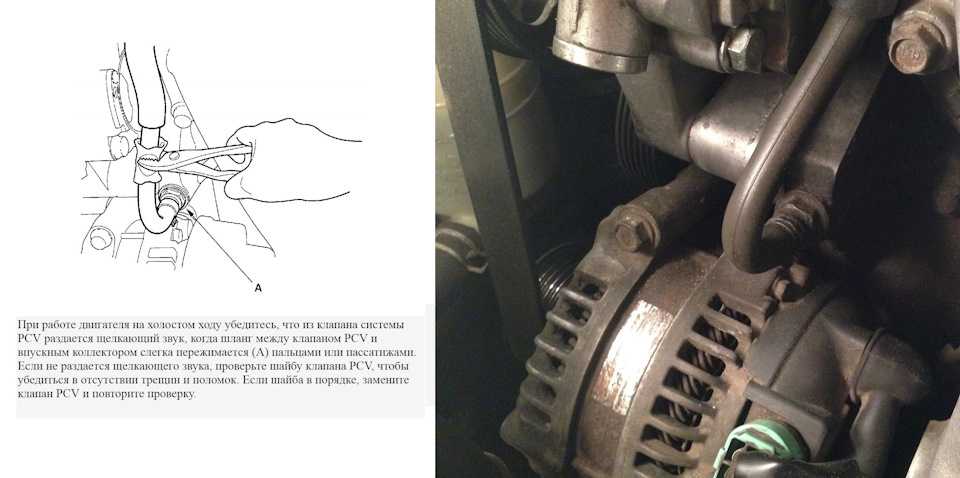 2.Собираем всё обратно и запускаем двигатель. Пережимаем шланг от клапана PCV к впускному коллектору. При этом обороты должны совсем немного просесть, а клапан должен издать четкий щелчок.