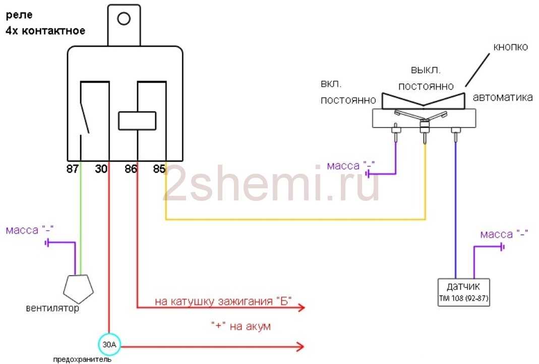 Стоит отметить, что раньше этот электрический элемент не использовался в данной цепи, и все работало очень просто – при достижении определенной температуры охлаждающей жидкости, температурный датчик замыкал контакты цепи питания вентилятора, и он включался в работу.