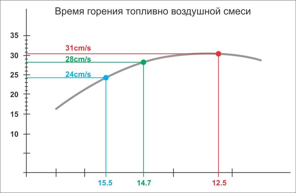 опираясь от данных оптимальной смеси 14,7:1 получаем 28см/с как говорят многие источники примерно 28-30градусовповорота коленвала.
