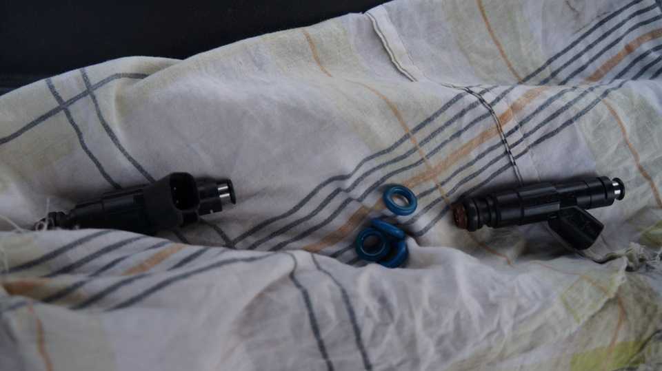 - Вытаскиваем топливные форсунки с уплотнителями и протираем их ветошью.