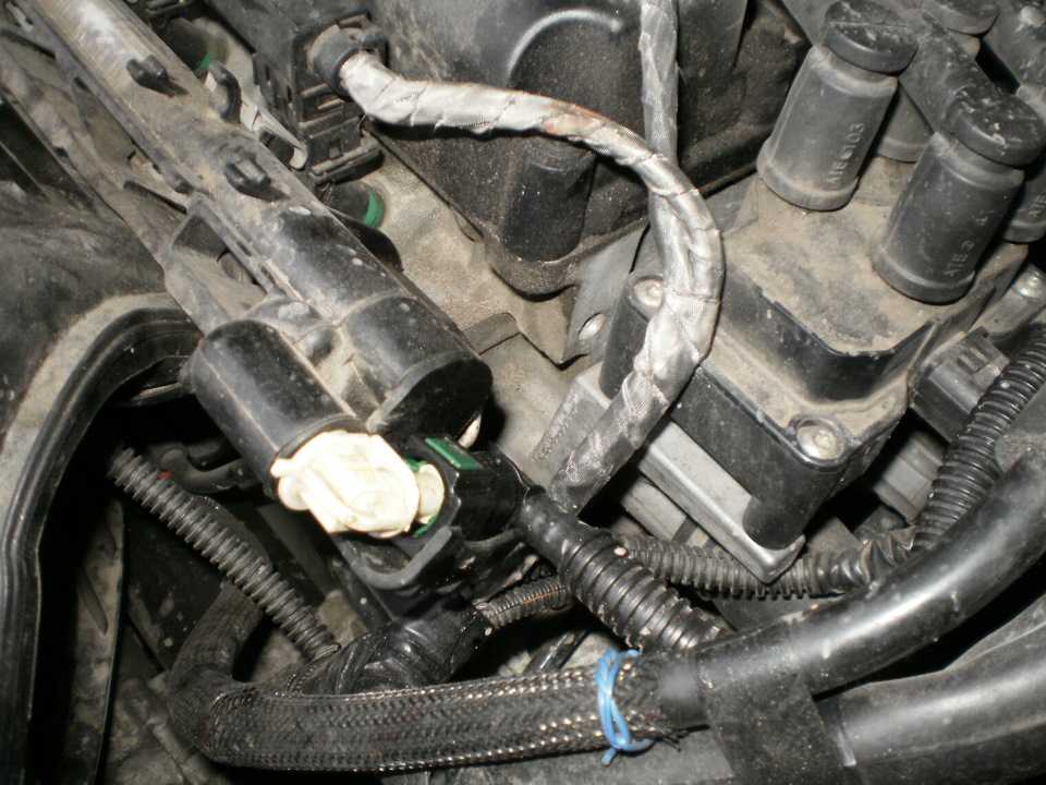 …и, немного приподняв, снимаем блок колодок с разъема данной форсунки.