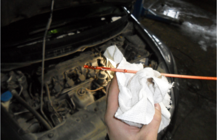 16. Повторно вытяните масляный щуп. Уровень масляной пленки должен находиться между метками «А» и «Б».
