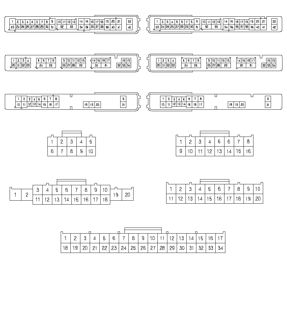 РАЗЪЕМ S (20P)РАЗЪЕМ Р (10P)РАЗЪЕМ Q (16P)РАЗЪЕМ R (20P)РАЗЪЕМ Т (34P)РАЗЪЕМ E (42P) (LHD)РАЗЪЕМ E (42P) (RHD)РАЗЪЕМ E (34P) (LHD)РАЗЪЕМ F (34P) (RHD)РАЗЪЕМ G (21P) (LHD)РАЗЪЕМ G (21P) (RHD)