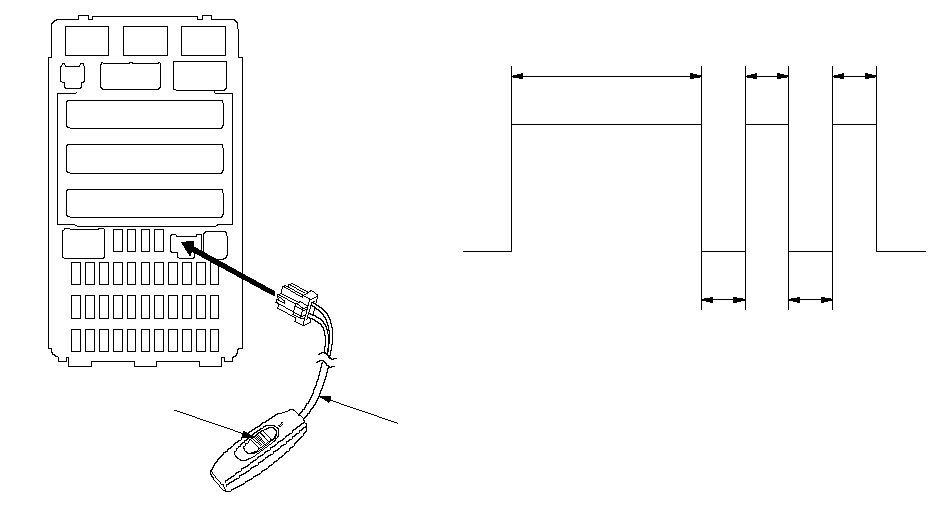 Через 5 секунд потолочный плафон должен загореться на 2 секунды, потухнуть, затем мигнуть один раз на 0,2 секунды. Это означает, что вы находитесь в режиме тестирования 1 функции автодиагностики. ПРИМЕЧАНИЕ: Если потолочный плафон не включается и не мигает, проверьте работу цепи SCS.