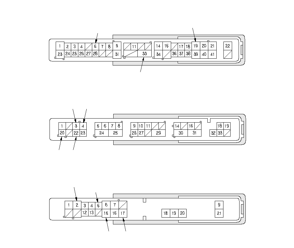 РАЗЪЕМ S (20P)РАЗЪЕМ Т (34P)РАЗЪЕМ Q (16P)РАЗЪЕМ R (20P)РАЗЪЕМ E (42P) (LHD)РАЗЪЕМ E (42P) (RHD)РАЗЪЕМ E (34P) (LHD)РАЗЪЕМ F (34P) (RHD)РАЗЪЕМ G (21P) (LHD)РАЗЪЕМ G (21P) (RHD)