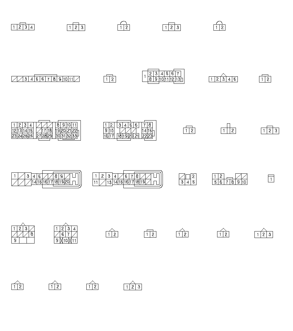 12Р СОЕДИНИТЕЛЬНЫЙ РАЗЪЕМ(6)ДАТЧИК FRP (2)КЛАПАН СИСТЕМЫ EGR(3)ДАТЧИК MAP/ДАТЧИК 2 IAT(1)13Р РАЗЪЕМ (8)33P РАЗЪЕМ (11)БЛОК РЕЛЕ/ПРЕДОХРАНИТЕЛЕЙ (20)В МОТОРНОМОТСЕКЕДАТЧИК СМР(4)ЭЛЕКТРОМАГНИТНЫЙ КЛАПАНУСИЛЕНИЯ ТУРБОНАГНЕТАТЕЛЯ (5)КЛАПАН РЕГУЛИРОВКИ ДАВЛЕНИЯ ТОПЛИВОРАСПРЕДЕЛИТЕЛЬНОЙ РАМПЫ (7)ДАТЧИК MAF/1 ДАТЧИК IAT (9)2Р РАЗЪЕМ (10)БЛОК УПРАВЛЕНИЯ СВЕЧАМИ НАКАЛИВАНИЯ (22)ДАТЧИК 2 ECTДАТЧИК ЧАСТОТЫ ВРАЩЕНИЯ ВТОРИЧНОГО ВАЛА(ПРОМЕЖУТОЧНОГО ВАЛА) (27)ДАТЧИКТЕМПЕРАТУРЫТОПЛИВА (23)ТОПЛИВНЫЙ ОБОГРЕВАТЕЛЬ (24)ЭЛЕКТРОМАГНИТНЫЙ КЛАПАНТОПЛИВНОГО ФИЛЬТРА(25)ЭЛЕКТРОМАГНИТНЫЙ КЛАПАНБЛОКИРОВКИЗАДНЕГО ХОДА (26)ПРОВЕРКАРАЗЪЕМА ТАХОМЕТРА (13)БЛОК РЕЛЕ/ПРЕДОХРАНИТЕЛЕЙ (14)В МОТОРНОМОТСЕКЕELD (15)ДАТЧИК ПОЛОЖЕНИЯ IMRC (31)2-КОНТАКНЫЙ (2Р) РАЗЪЕМ (30)БЛОК РЕЛЕ/ПРЕДОХРАНИТЕЛЕЙ В МОТОРНОМ ОТСЕКЕ(16)БЛОК РЕЛЕ/ПРЕДОХРАНИТЕЛЕЙ В МОТОРНОМ ОТСЕКЕ(17)23P РАЗЪЕМ (12)БЛОК РЕЛЕ/ПРЕДОХРАНИТЕЛЕЙ (18)В МОТОРНОМОТСЕКЕБЛОК РЕЛЕ/ПРЕДОХРАНИТЕЛЕЙ (19)В МОТОРНОМОТСЕКЕДАТЧИК 1 ECT10Р РАЗЪЕМ (21)ПРИМЕЧАНИЕ:· Разъем с клеммами-входами (двойной контур): вид со стороны клемм· Разъем с клеммами-входами (одинарный контур): вид со стороны проводов