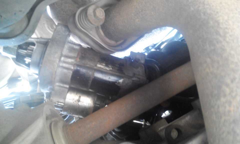 Если стартер не работает, не вращает двигатель, его необходимо демонтировать. Демонтаж также производится снизу. Для этого необходимо открутить два болта крепления, отсоединить провода, идущие к нему.
