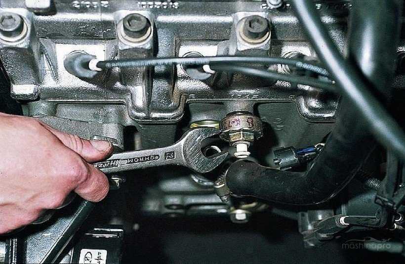 Затем следует получить доступ к датчику (деталь по размерам небольшая) и снять его. На разных авто крепеж может отличаться, однако зачастую датчик крепится болтом. Остается только подобрать нужный ключ (например, ключом на 12 открутить болт).
