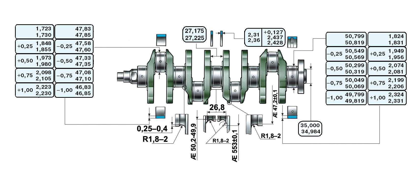 Так что без обращения к эксперту, который разберет двигатель и проведет диагностику, зачастую не обойтись. Вполне вероятно, что придется устанавливать ремонтные вкладыши большой толщины . Такие детали можно искать по следующим параметрам: