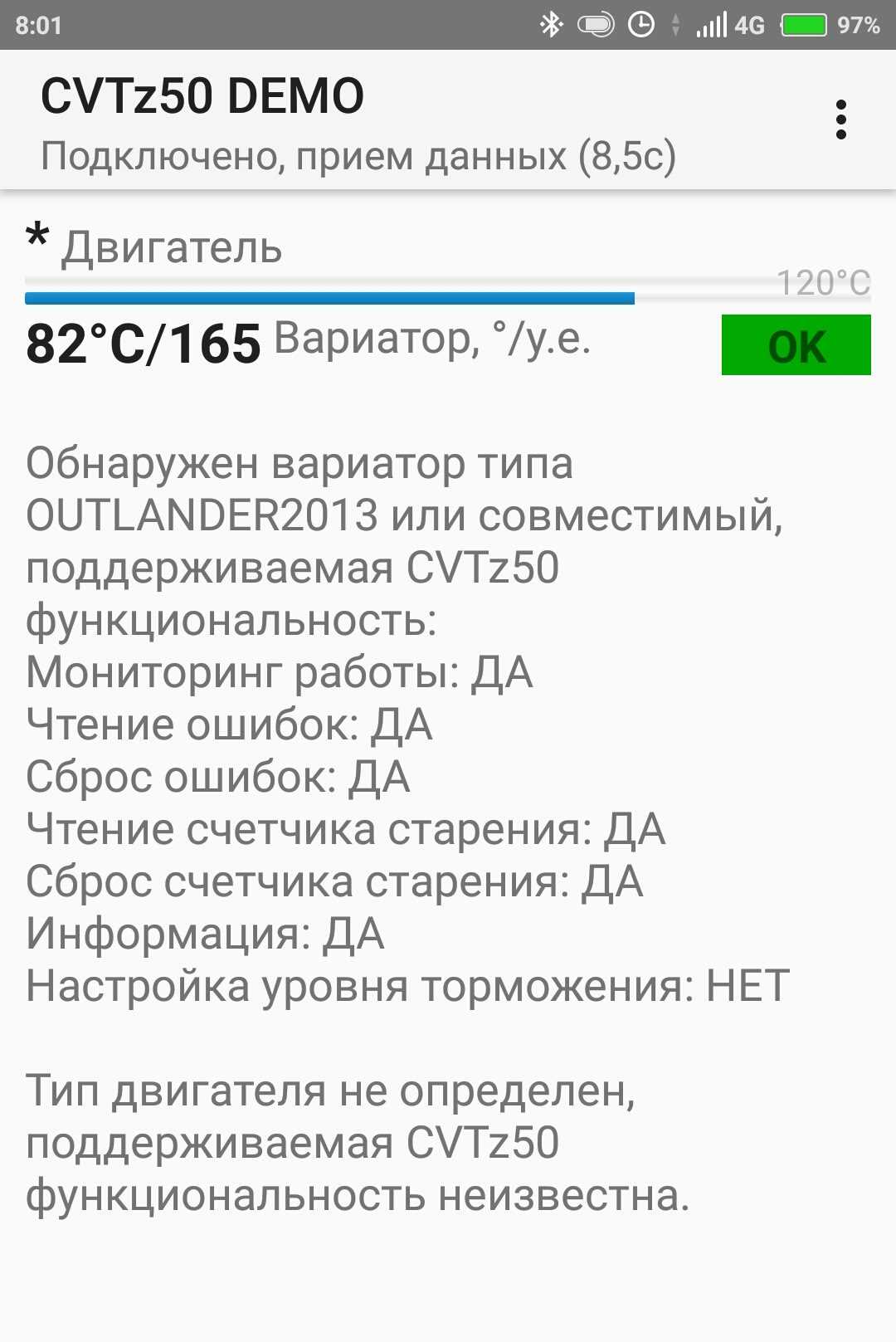 Проверить уровень по щупу ещё проще. Манипуляции производятся на прогретом после поездки моторе. Температура вариатора в данном случае будет порядка 74 градусов.