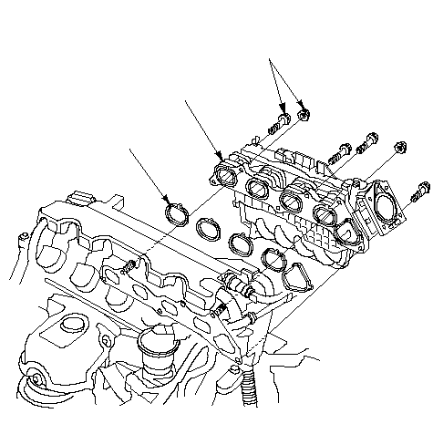 14. | Выньте болты и гайки крепления впускного коллектора, затем снимите коллектор с головки цилиндров. |