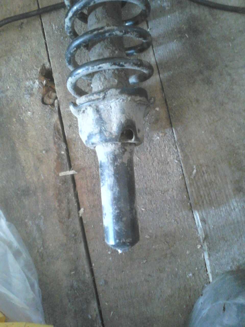 вилку было решено не совсем отрезать от стойки чтобы при сварке не повредить внутренние органы новой стойки.бонусом будет небольшое поднятие автомобиля над дорогой.а в наших краях это очень актуально, тем более на полном приводе.далее перебираем живую часть стойки старой на новую.кстати сказать на удивление все остальное живое и вполне здравствует!получаем-