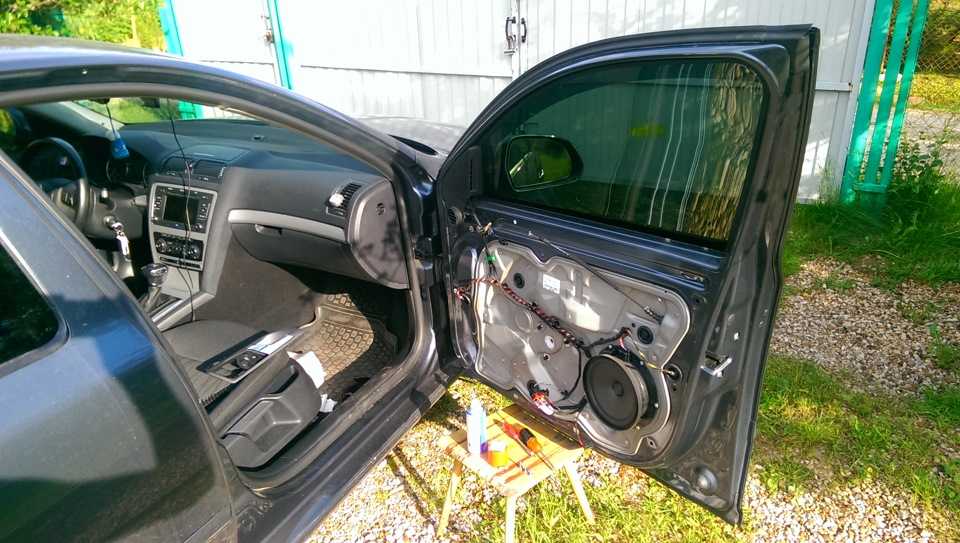 Разбор двери для замены стеклоподъёмника в автомобиле Шкода Октавия в кузове А7