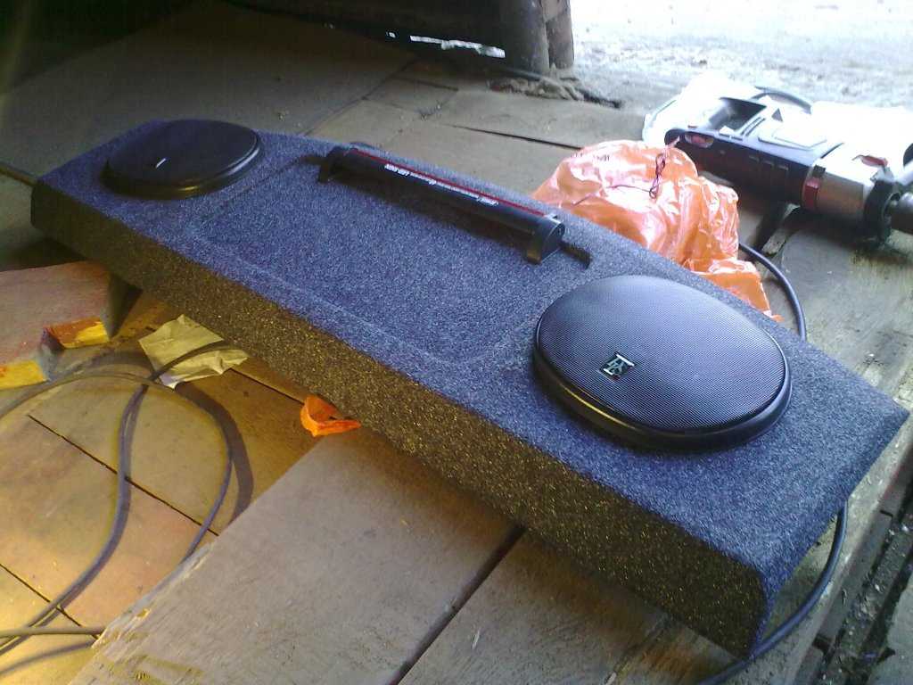 Итак, приступим к непосредственному изготовлению. Оптимальным варантом для салона Хендай, как в плане стоимости, так и качества, будет установка 4-х динамиков.Фронтальная акустика с 2-я динамиками возьмет на себя главную роль. Но все равно, без поддержки тыла никакая акустика нормально звучать не будет. Поэтому два динамика тоже ставятся сзади на самодельную, в данном случае полку.