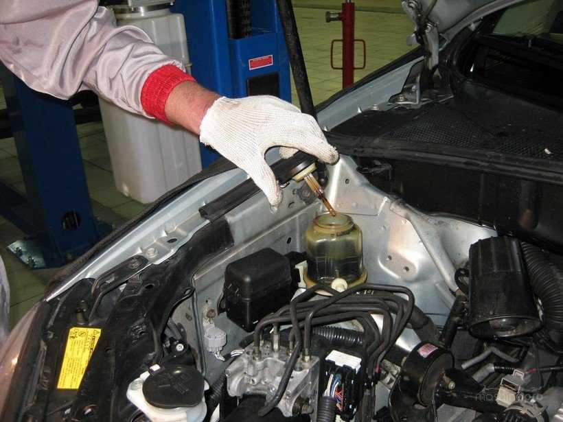 капот и найти бачок с рабочей жидкостью для ГУР. Эта емкость находится в