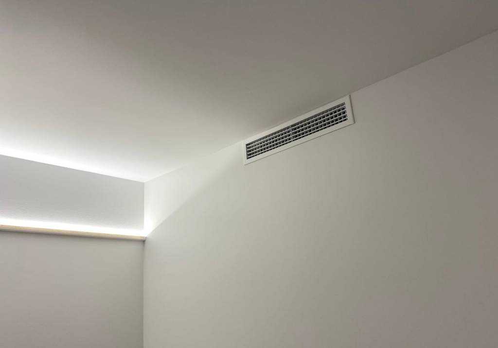 Для проекта вентиляции трехкомнатной квартиры в центре Екатеринбурга мы выбрали щелевые настенные решетки. В квартире есть своя вентиляционная установка, скорость воздушных потоков достаточна и не требует диффузоров.