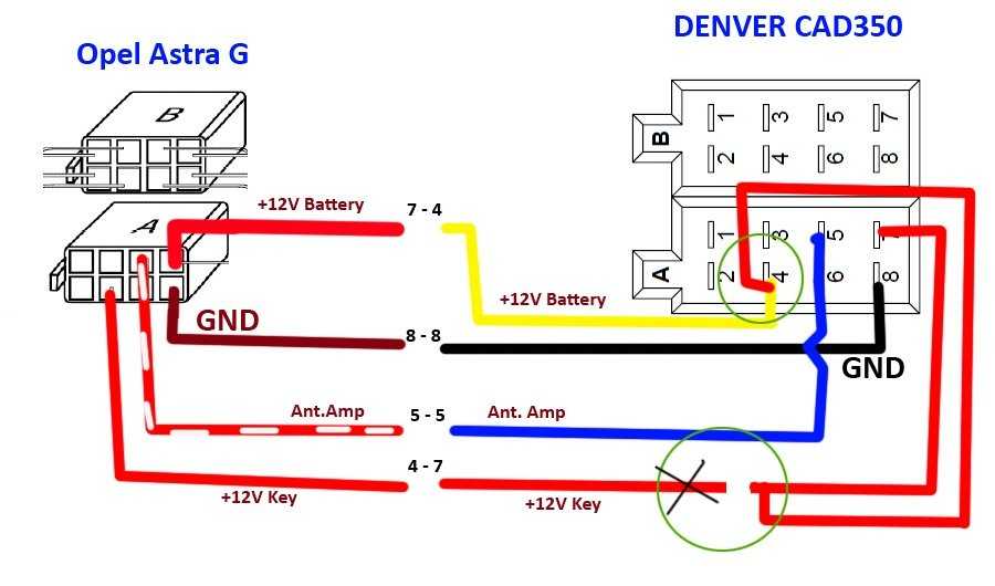 Ниже приводим распиновку ISO на одной из популярных автомагнитол, устанавливаемых на Опель Омега. Это Денвер CAD350 – модель нестандартная, но довольно часто покупаемая.