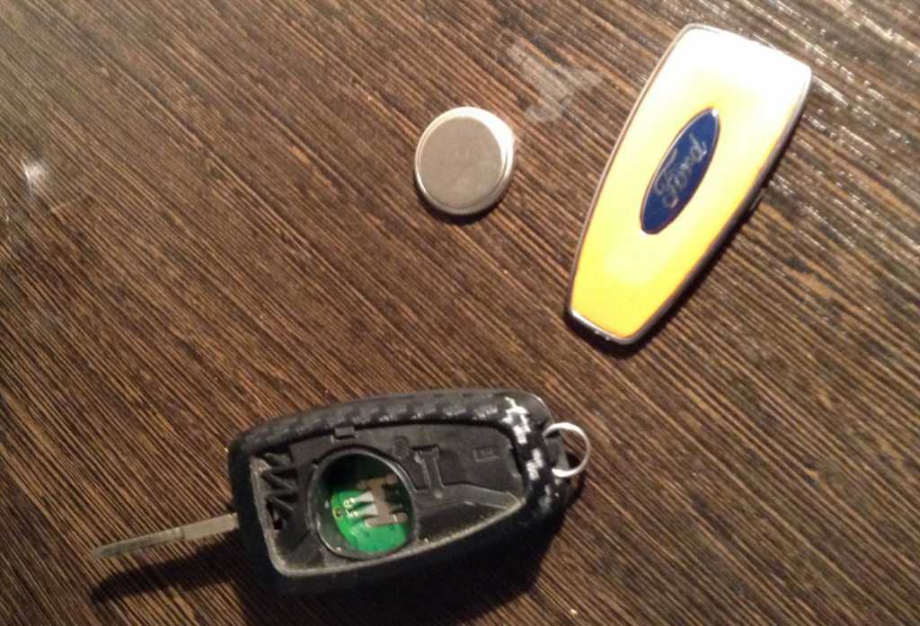 Форд Фокус 3 при обнаружении ослабления заряда батарейки, от в которой требуется работает ключ, очень напористо припоминает о том, что ее нужно поменять. Иначе автомобиль просто не трогается с места.