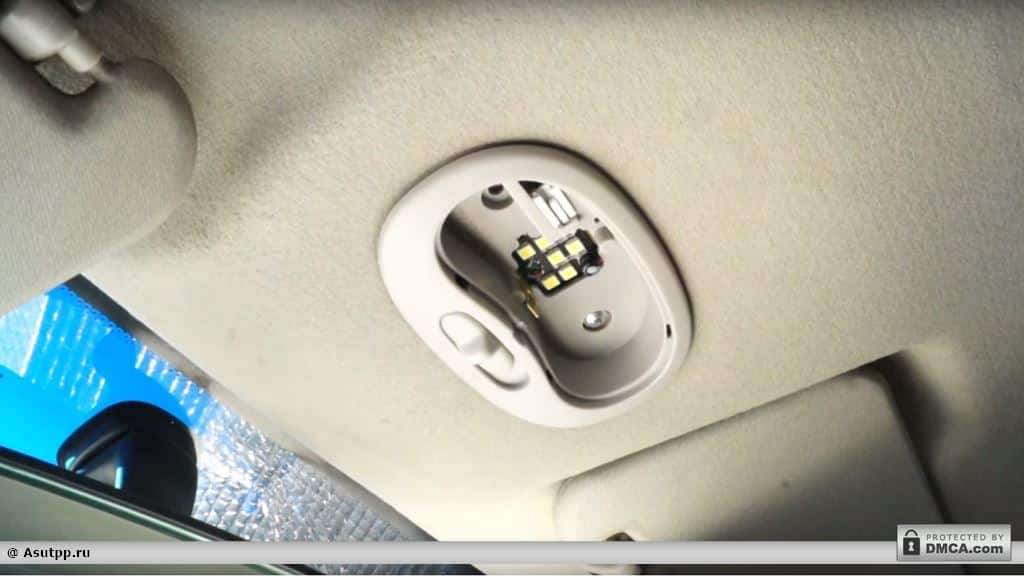 В замен обычных лампа накаливания можно установить светодиодные с точно такими же цоколями. По центру помимо обычной лампы можно поставить универсальную подсветку салона, о ней мы расскажем ниже.