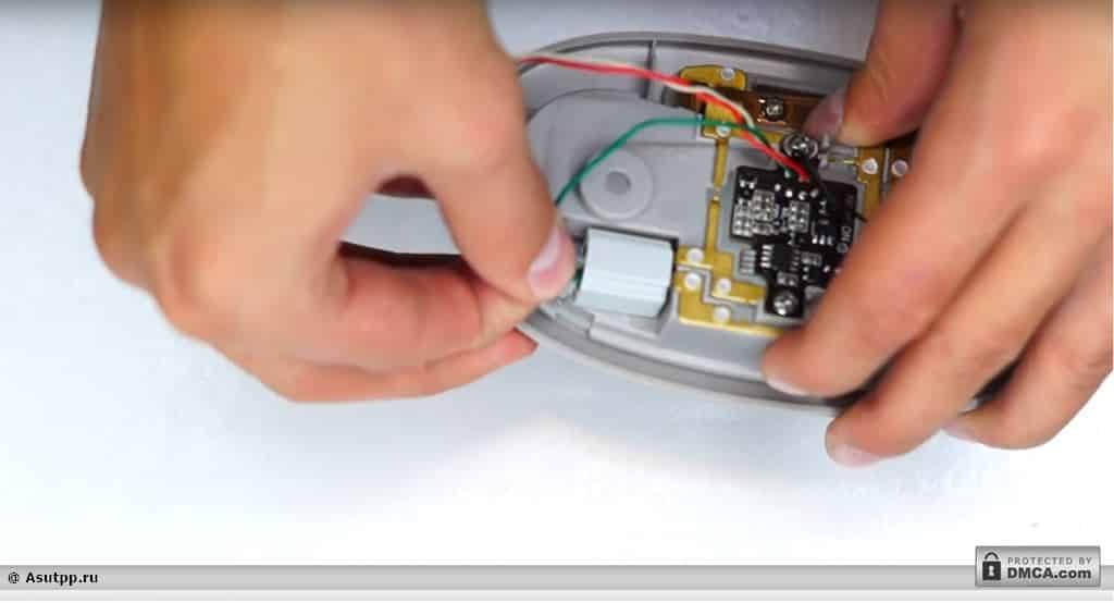 К крайнему контакту в разъеме подключается зеленый провод, он считается незадействованным. Остальные выводы (красный и белый) подключаются к разъему питания.