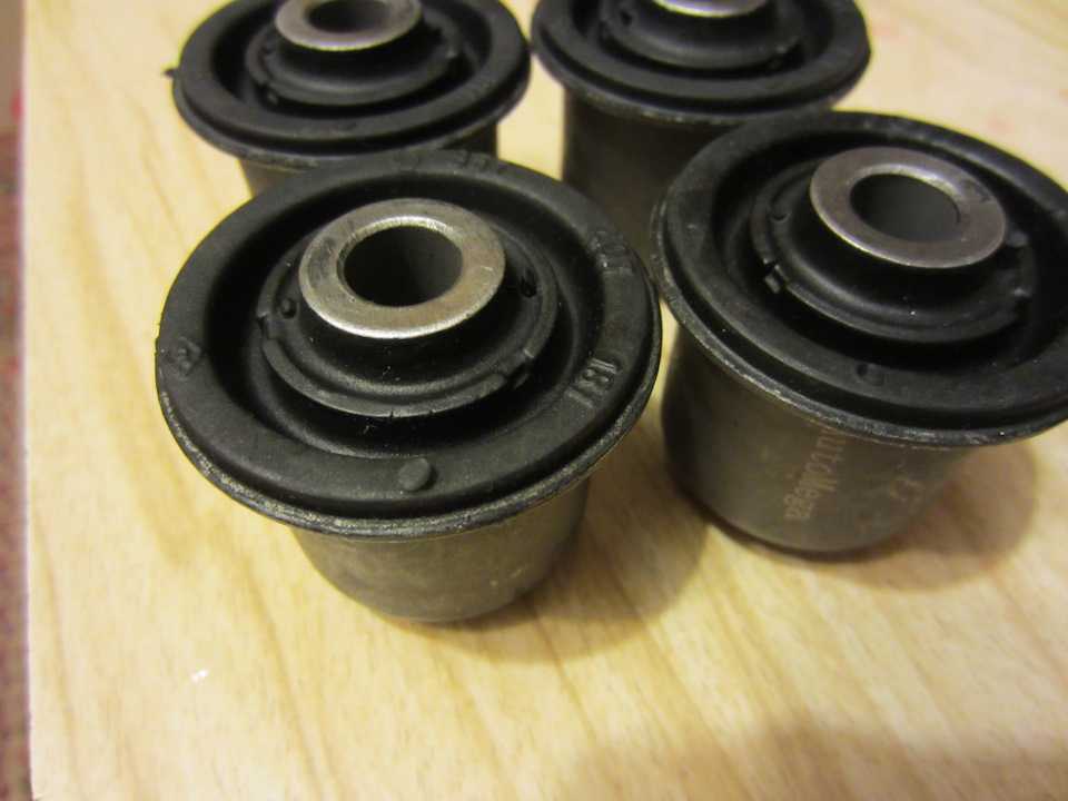 - Пробил номер. Еще раз удивился, когда увидел, что сайленты на 80ки. Позднее узнал, что это, по-моему, сайленты с рычагов Quattro и они имеют право на жизнь. Почистил посадочное место, смазал литолом внешние обоймы и запрессовал, как было — снаружи внутрь. Со вторым рычагом я основательно запарился. Внешние обоймы сайлентов напрочь прилипли к стенкам, пришлось вытаскивать варварскими способами. Сначала сверлил резину вокруг центральной втулки и выдавливал ее. Затем просовывал лезвие ножовки и пилил внешнюю обойму. Но даже с распиленной не получалось выпрессовать. Дальше уже гнул обойму внутрь, только после этого получалось вытащить. Зачистил стенки перед запрессовкой и с литолом загнал новые сайленты на место.