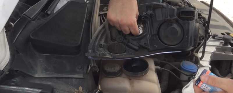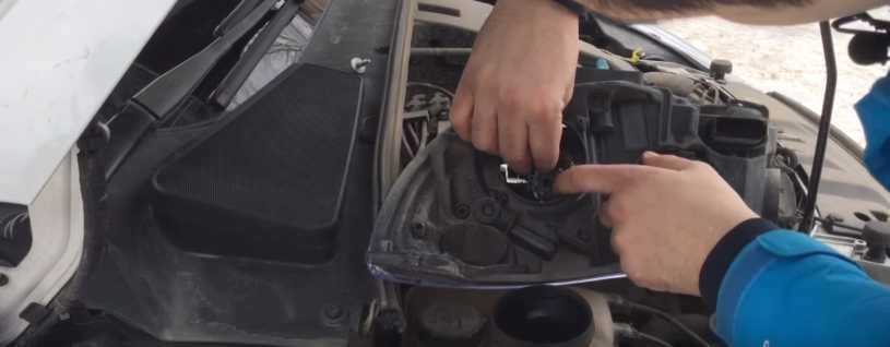 Затем рукой необходимо подлезть к противотуманной фаре и на пол оборота повернуть перегоревшую лампу. Вытащить ее на верх и аккуратно отсоединить штекер.