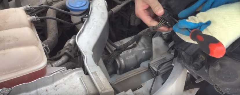 С помощью звездочки, либо плоской отвертки откручиваем болты крепления фары, вынимаем ее из пазов и отсоединяем колодку проводов.