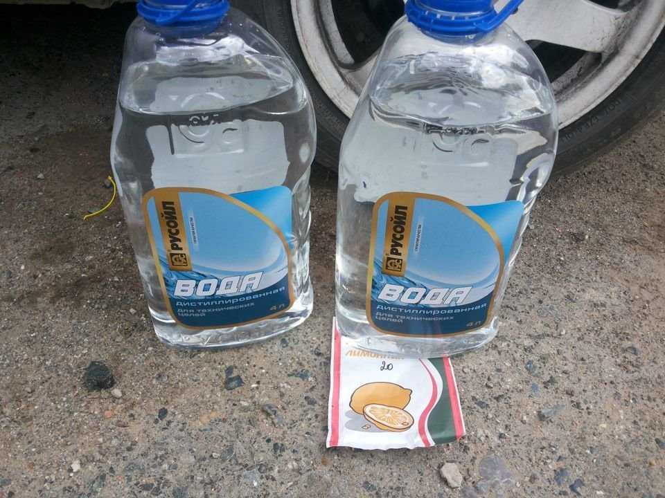 - залейте дистиллированную воду для ополаскивания системы охлаждения;