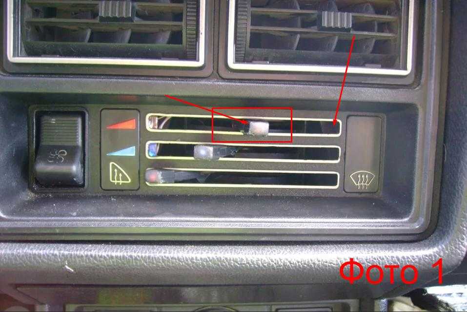 - На приборной панели необходимо найти рычаг, управляющий подачей тёплого воздуха в салон. Этот рычаг сдвигается в крайнее правое положение.