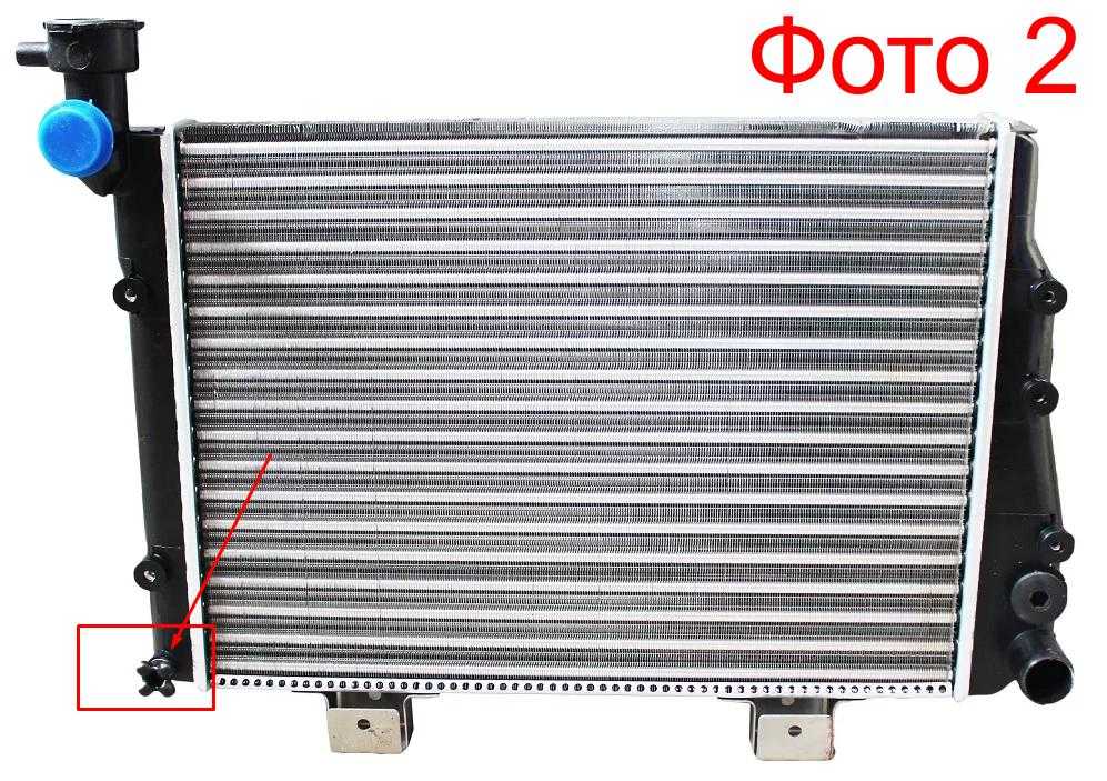 Нижнем углу радиатора находим пробку сливного отверстия (фото 2), откручиваем ее и сливаем жидкость в заранее приготовленную емкость.