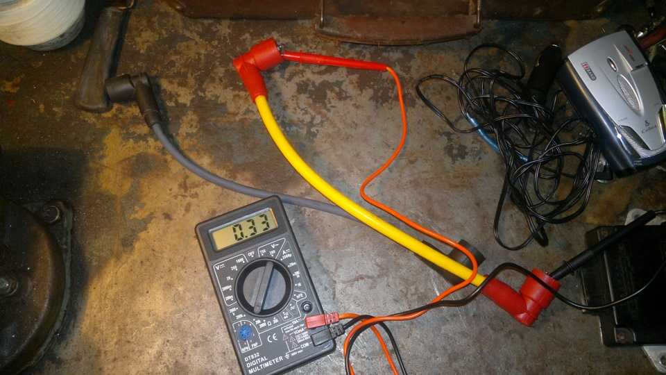 Чтобы протестировать высоковольтную катушку, необходимо снять с крышки трамблёра центральный кабель. Путём прокручивания стартера проверяем наличие искры таким же образом, как с ВВ проводами. Если искра есть, значит, катушка исправна и неполадку следует искать в другом месте. При отсутствии искры проблема возможна как с самой катушкой, так и с низковольтной цепью. Для диагностики рассматриваемого устройства можно воспользоваться мультиметром. Для этого: