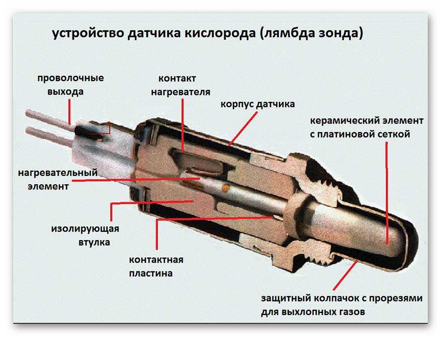 Как правило, лямбда-зонд состоит из следующих компонентов: