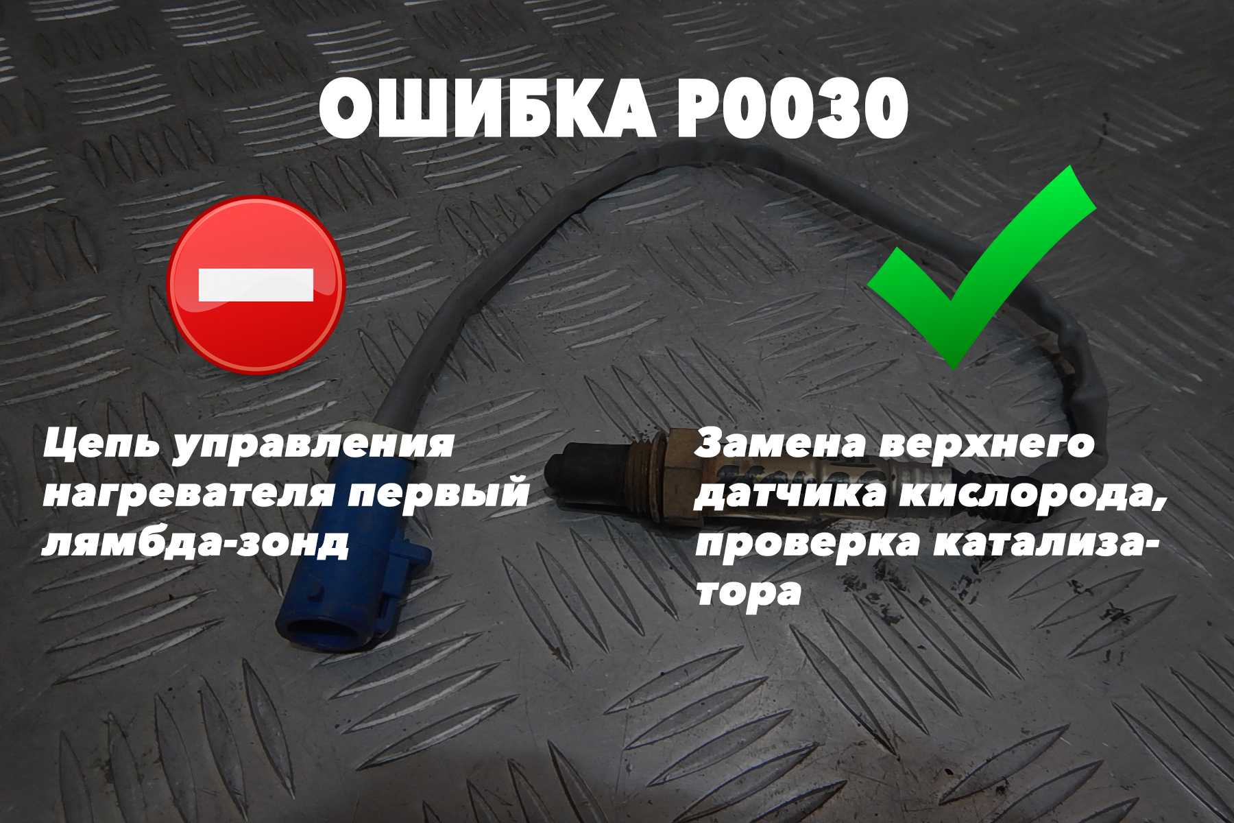 - P0030 – обрыв питания нагревателя (кислородный датчик);