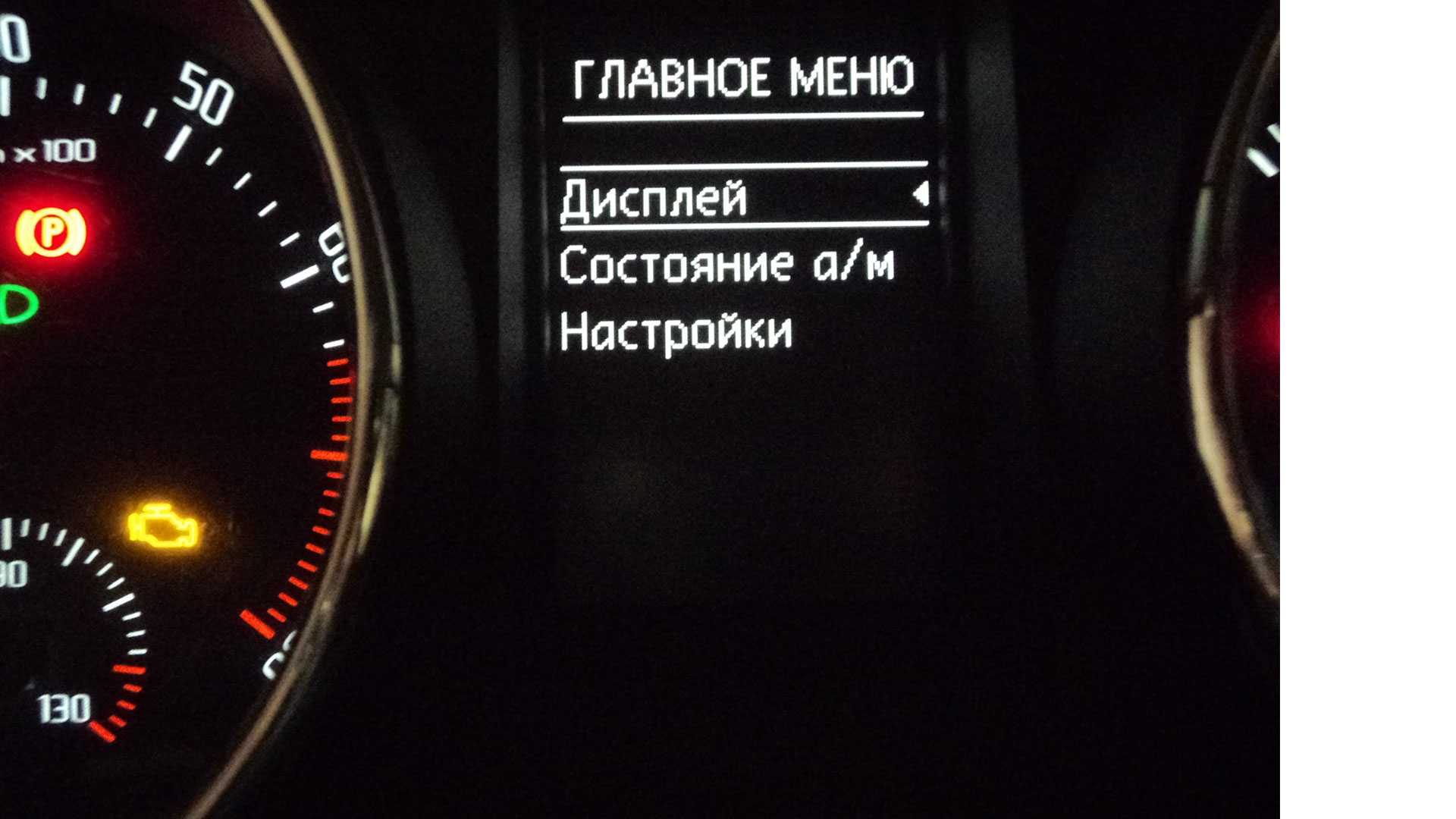 Этот вариант актуален для тех версий, где предусмотрено наличие многофункционального дисплея. Что интересно, такой же метод применяется на автомобилях Skoda Superb и Skoda Rapid.