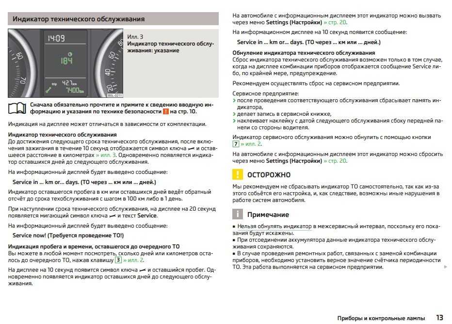 Напоминание о сервисном интервале техобслуживания автомашины, как сбросить на Шкода Йети, Октавия