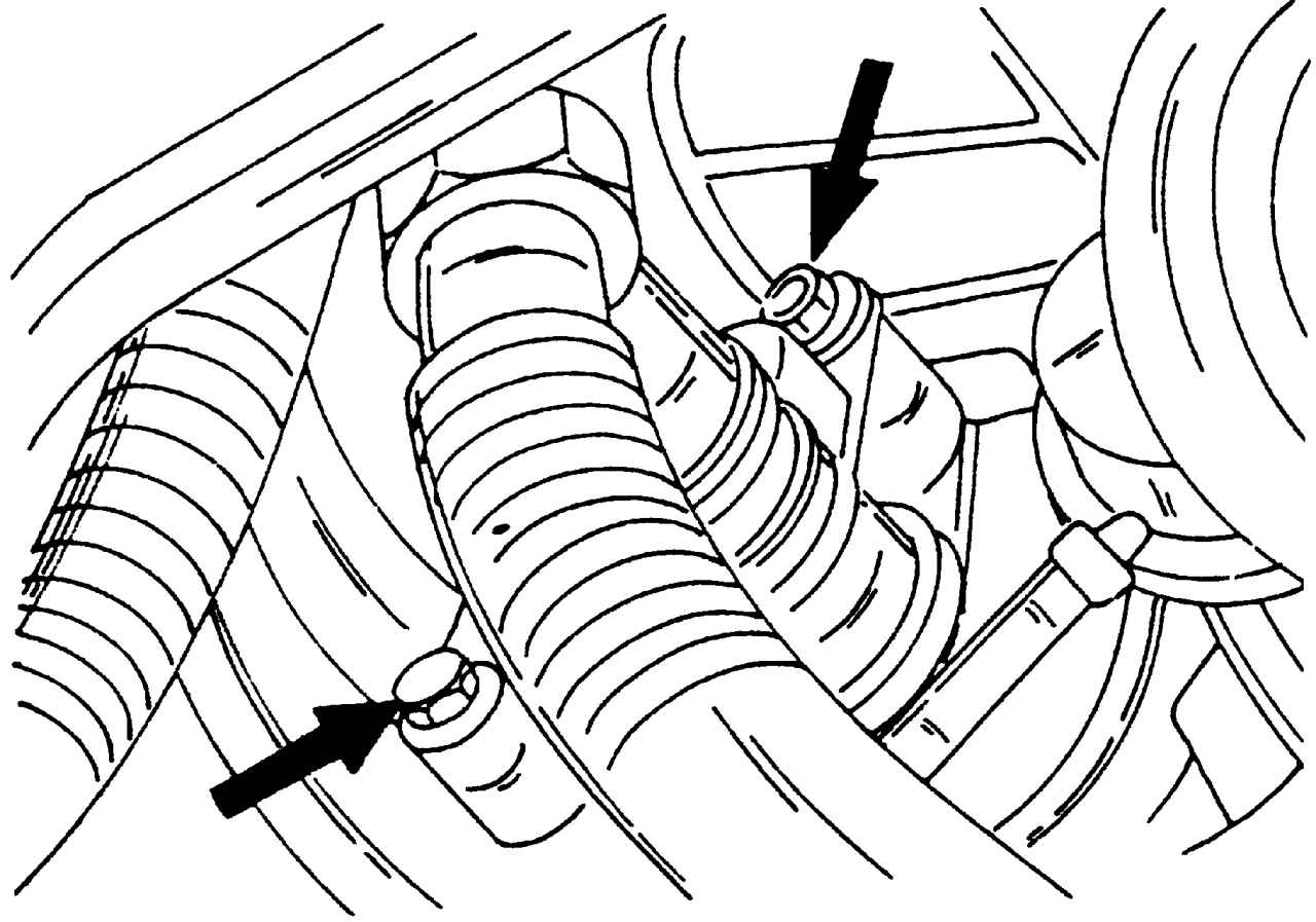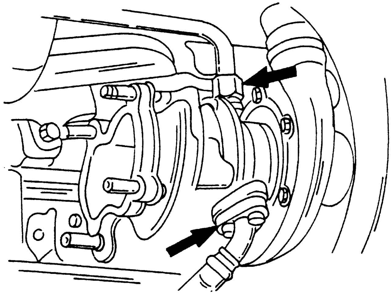 — отсоедините трубопровод рециркуляции масла и трубопровод подвода в показанных на рис. 485 местах;
