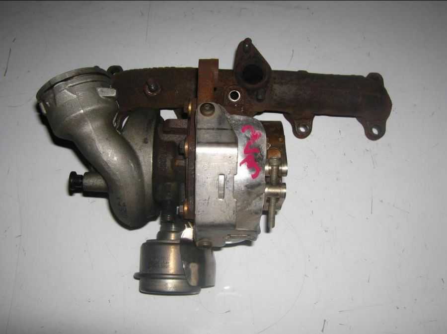 Речь будет идти о Форд Галакси 1,9 130л.с. Машина отца. Поехали мы в Москву. Нечего не предвещало беды. И тут на границе короткий свист и пропала тяга, машина стала как овощ. Сразу стало ясно что это турбина, уже не в первый раз.Небольшое предисловие. На Галакси уже летела турбина и отремонтировали её в Беларуси.Но в Москву надо срочно, зазора по времени нет. Поехали так. Сразу был расход масла, потом пропал. В сумме так проехали около 1300 км.Дома загнал машину в гараж и занялся подготовкой к снятию турбины. Было решено залить раскоксовыватель поршневых колец, чтобы немного очистить поршня с кольцами. Использовал Лавр. После запустил двигатель, он дымел ужасно из-за химии. Далее слил масло (предварительно сняв защиту) и залил чистое лукойл 5w40 (покупали в дороге на долив) с промывкой Лавр на 5 минут. После 5 минут слил масло. Далее снимаем турбину.Откручиваем 3 гайки под ключ на 12 крепления выхлопной трубы к турбине. Далее ключем на 17 откручиваем трубку подачи масла (сверху на турбина) и немного отгибаем её. Ключем на 22 откручиваем слив масла. Головкой на 12 откручиваем 8 гаек с коллектора и ключем на 13 один болт крепления турбины к мотору. Потом отсоединяем воздушные патрубки справа.