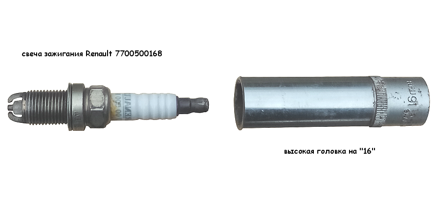 Например, штатные свечи для двигателей k7j 1,4 л и k7m 1,6 л — Renault 7700500168 (с двумя боковыми электродами) или Renault 7700500155 (с одним боковым электродом).
